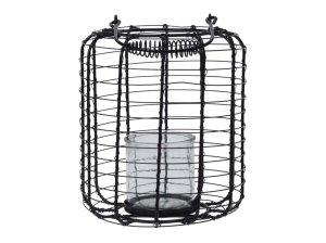 Čierna kovová drôtená lampa so závesom na sviečku - štýlový prvok pre útulnú domácu atmosféru.