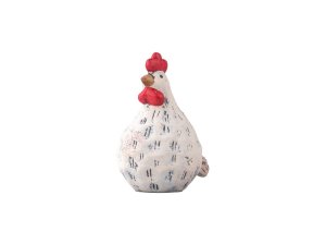 Keramická sliepka, rozmer 90×112 mm, mix prevedenia v bielej farbe.