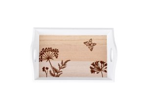 Drevená tácka jarný motív v prírodnej, bielej a tmavo hnedej farbe 230x45x150mm