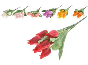 Umelé tulipány v kvetináči vyzerajú [veľmi realisticky].