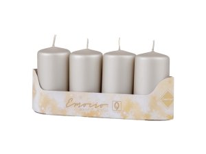 Súprava štyroch valcových sviečok Emocio o rozmere 40×75 mm v metalicky matnom prevedení.