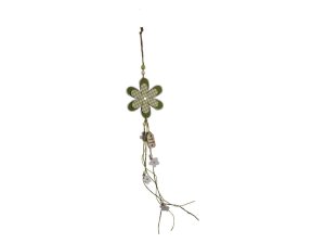 Drevený záves kytička v zelenej a bielej farbe 145mm