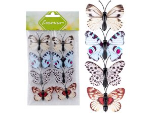 Dekorácia plastová motýle s lepíkom vo farebnom prevedení 8ks 45x35mm