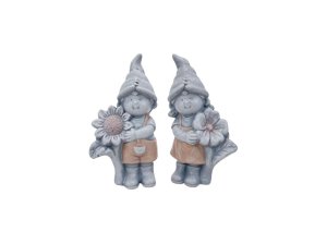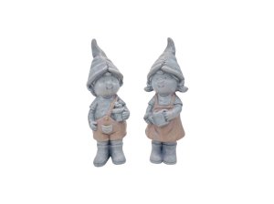 Trpaslík keramika holka chlapec v mixe farieb, šedá a ružová 80x217mm