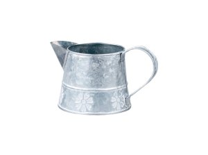Plechová malá kanva v šedej a bielej farbe, bordúra kvietok 185x115x105mm