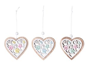 Drevený záves srdca v mixe farebného prevedenia 3ks 80x10x80mm