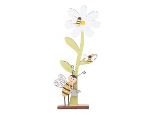 Dekorácia drevený kvietok s včeličkou vo farebnom prevedení 80X35X230mm