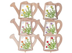 Drevený zápich v prírodnej farbe a farebnom prevedení, kanvičky + špajle, mix 110x92 mm