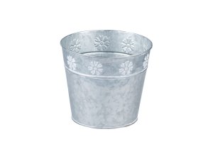 Plechový kvetináč klasik bordúra kvietok v šedej a bielej farbe 180x155mm