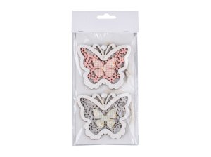 Drevený záves - motýle, 2 ks, rozmer 95×85 mm, mix farieb.