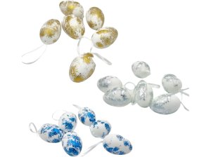 Veľkonočné vajíčka s potlačou kvetov môžete vďaka pútku zo saténovej stuhy zavesiť na vetvičky vo váze, vence, do okien a pod.