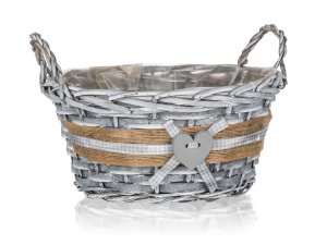 Košík GRIS okrúhly, 25 x 12 cm, s uchami, prútený. priemer: 25 cm výška: 12 cm materiál: prútie Košík prútený s uchami je vhodný iba na dekoratívne účely.