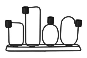 Svietnik na 4 kónické sviečky, 27 x 15 x 7 cm, kov. ČIER. rozmery: 27 x 15 x 7 cm materiál: oceľový drôt farba: čierna Tento svietnik je krásny celoročný doplnok Vášho interiéru aj exteriéru.