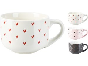 Keramický hrnček z kameniny 450 ml so srdiečkami, mix farieb.