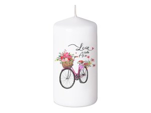 Valec sviečka Bicykel Love is in the Air, v červenej farbe 60x110 mm