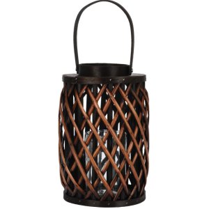 lampáš, vŕba, veľkosť: 19x19x32cm, s držadlom a skleneným valcom 10x15cm, hnedá farba