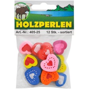Drevené srdcia, 6 malých /1,5 x 1,8 mm/ a 6 veľkých /1,9 x 2,2 mm/, rôzne vzory, prepichnuté