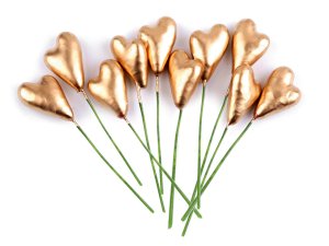 Dekoračné srdiečka sú pripevnené k ohybnému floristickému drôtiku.