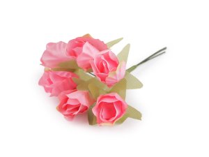 Umelé mini ruže sú pripevnené k drôtiku, ktorý je omotaný floristickou páskou.