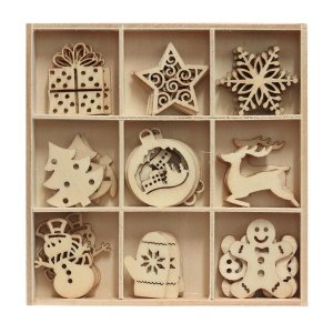 Dekoračné drevené výrezy 45 kusov v balení v drevenej krabičke 8 rôznych vzorov v sade Ideálne na zdobenie sezónnych prianí, krabičiek, darčekových tašiek a výrobu svadobných dekorácií