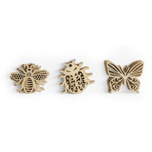 Dekoračné drevené výrezy v tvare hmyzu Balenie obsahuje 9 kusov v 3 rôznych dizajnoch Ideálne na zdobenie sezónnych prianí, krabičiek, darčekových tašiek a výrobu svadobných dekorácií