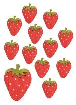 Jahody s lepíkom drevené 3 cm, 24 ks v krabičke