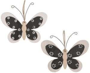 Drevená dekorácia 45 mm - motýle a kvietka na kolíčku, sada 5 ks, prírodná, mix farieb.