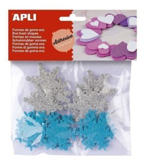 Penovka v tvare snehových vločiek vo farebnom mixe s trblietkami na povrchu.