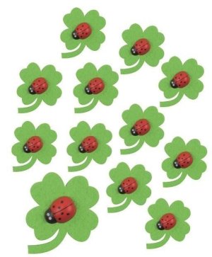 Štvorlístky filcové s lienkou s lepíkom 3 cm, 12 ks v sáčku
