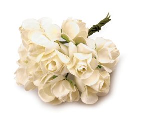 Umelé mini ruže sú pripevnené k drôtiku, ktorý je omotaný floristickou páskou.
