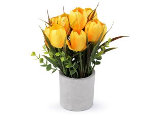 Umelé tulipány v kvetináči zútulnia a rozjasnia počas jari a veľkonočných sviatkov každý interiér.
