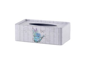 Krabička na papierové vreckovky plechová LAVENDER 24 x 13 x 9,5 cm, sa vďaka svojmu dizajnu hodí do každého interiéru.