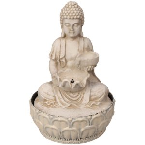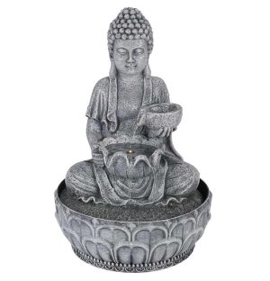 Dekoratívna fontána s Budhom a LED osvetlením Elegantná modulová fontána s motívom Budhu je vyrobená z kvalitného polyresinu a doplnená LED svetlom, ktoré vytvára príjemnú a upokojujúcu atmosféru.