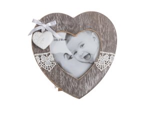 Rámček s čipkou LACEWORK o rozmere 15 x 15 x 2 cm na fotografii o veľkosti 10 x 10 cm,, tvar srdca je vhodný na dekorovanie bytu.