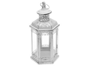Malý kovový lampáš nádherne rozžiari napríklad parapet okna alebo poličku.