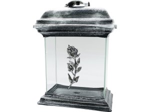 Elegantný cintorínsky lampáš Madona v tvare katedrály s výškou 26 cm.