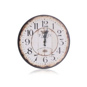 Nástenné okrúhle hodiny PARIS s celoplošným dekórom s priemerom 34 cm.