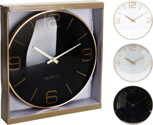 Nástenné hodiny Napájanie z batérie Rozmery 250 MM Puzdro v tvare kruhu Plastové puzdro ČIERNA farba púzdra Ručičkový ciferník Čierna farba ciferníka Ciferník s arabskými číslami