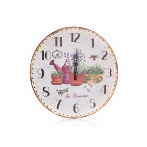 Nástenné okrúhle hodiny LAVENDER s celoplošným dekórom s priemerom 34 cm.