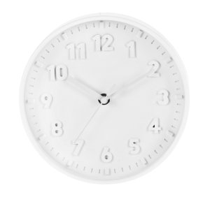 - nástenné hodiny s bielym rámom- biely ciferník s bielymi 3D číslicami- ľahko čitateľné vďaka veľkým priestorovým čísliciam- materiál: PP plast- univerzálny, určené do domácnosti, kuchyne, izby, chodby, …