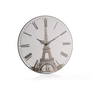 Nástenné okrúhle hodiny TOWER s celoplošným dekórom s priemerom 34 cm.