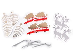 Papierové menovky s vianočnými motívmi sa hodia na ozdobenie zabalených darčekov, darčekových tašiek, fliaš vína a pod.