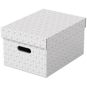 Súprava troch stredných lepenkových úložných boxov s moderným a štýlovým geometrickým dizajnom Ideálna pre ukladanie dokumentov, hračiek, kníh a ďalších drobností Možno použiť samostatne alebo uložiť na polici Vďaka …