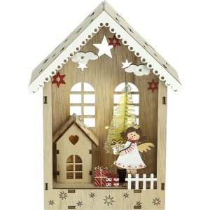 Vianočné dekorácie Retlux RXL 503 Domček s anjelom Drevo Časovač Rozmer: 16 x 22,5 x 6,5 cm Počet LED: 6 Farba svetla: teplá biela Napájanie: 2x AAA Len pre vnútorné použitie Krytie: IP 20 Hmotnosť: 211g