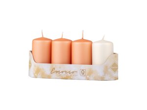 Súprava adventných stupňovitých sviečok v tvare valca a špicatou hlavou.