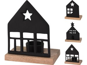 Hliníkový svietnik s motívom domčekov – čierny a prírodný, dekoratívny a praktický.