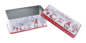 Plechová obdĺžniková dóza 18x10x7, 5cm, VIANOČNÉ dekorrozmery: 18x10x7, 5cmmateriál: plech Vianočná dóza na uschovanie a uskladnenie potravín, pomôže zachovať ich najvyššiu kvalitu, chuť i arómu.