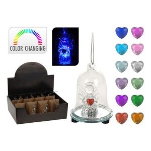 Dekorácia LED ZVONČEK s anjelikom pr. 6 x 8 cm, sklo mix. priemer: 6 cm výška: 8 cm materiál: sklo mix farieb (srdce vo vnútri): biela, žltá, červená, svetlo ružová, ružová, svetlo fialová, fialová, svetlo …