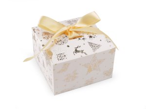 Elegantná krabička s vianočnými motívmi je vhodná na zabalenie menších darčekov (šperkov, praliniek, ponožiek a pod.).