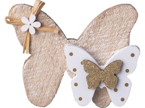 Dekorácia drevenia motýle prírodné v bielej farbe s glitrom 120x100mm